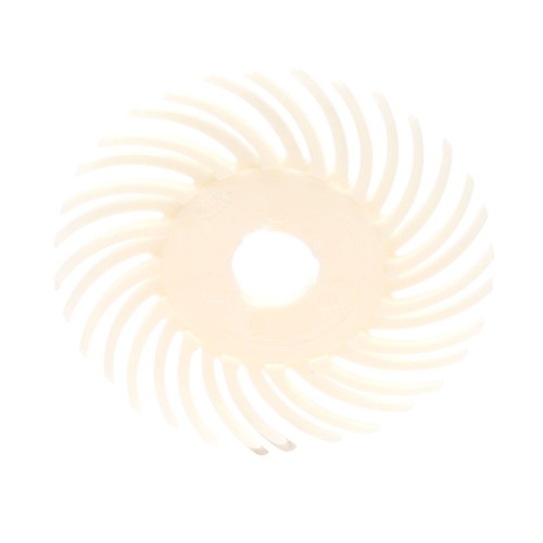 El cepillo radial SR Bristle Scotch-Brite™ está formado por partículas abrasivas de plástico afiladas intercaladas entre cerdas flexibles tipo muelle que se adaptan al sustrato con una acción flexible y de corte afilado. Nuestros discos están diseñados para tareas leves de eliminación de silicona y adhesivos sin dañar el revestimiento subyacente.