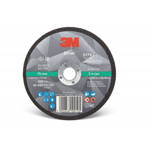 3M™ Disco de Corte Silver Plano, T41, 75 mm x 0.9 mm x 10 mm, 51767