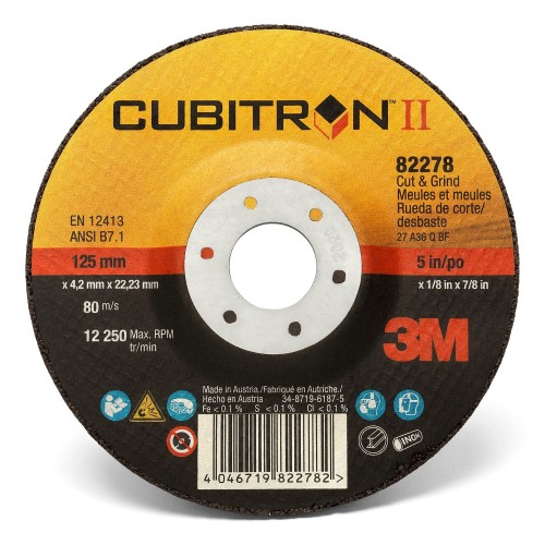 3M™ Cubitron™ II Disco de Corte y Desbaste T27, 125 mm x 4.2 mm x 22.2 mm, 81149