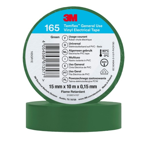3M™ Temflex™ 165 Cinta PVC, Verde, 15 mm x 10 m