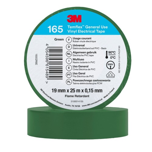 Cinta eléctrica de PVC 3M™ Temflex™ 165, Verde, 19 mm x 25 m
