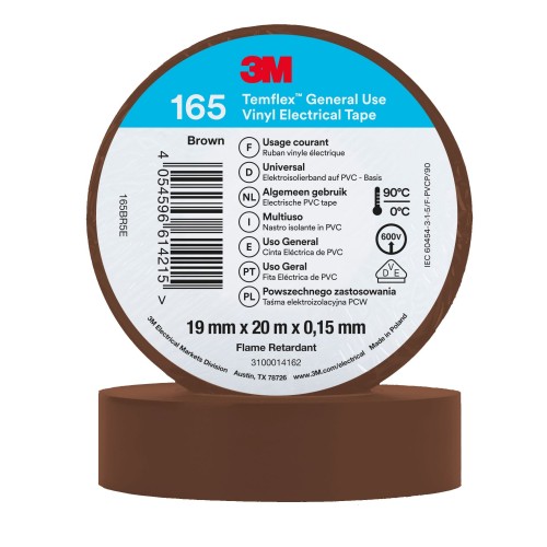 Cinta eléctrica de PVC 3M™ Temflex™ 165, Marrón, 19 mm x 20 m