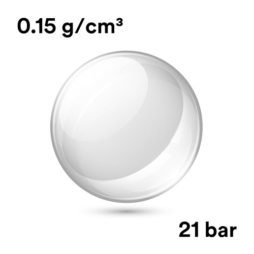 3M™ Glass Bubbles K15 have a density of 0.15 g/cc and an isostatic crush strength of 300 psi.
