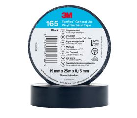 3M™ Temflex™ 165 Cinta PVC, Color Negro, 19 mm x 25 m