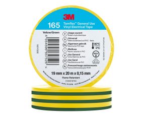 Cinta eléctrica de PVC 3M™ Temflex™ 165, Verde/Amarillo, 19 mm x 20 m