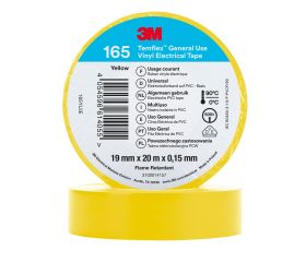 Cinta eléctrica de PVC 3M™ Temflex™ 165, Amarillo, 19 mm x 20 m
