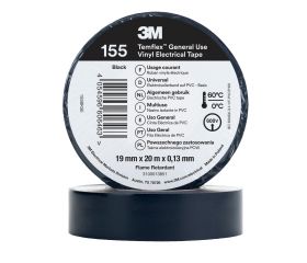 3M™ Temflex™ 155 Cinta PVC, Color Negro, 19 mm x 20 m