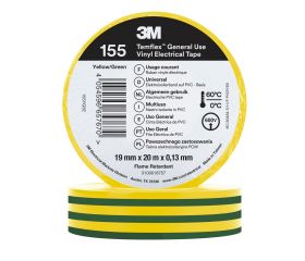 3M™ Temflex™ Cinta eléctrica de PVC 155, Verde/Amarillo, 19 mm x 20 m