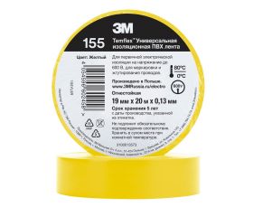 3M™ Temflex™ 155 Cinta PVC, Amarillo, 19 mm x 20 m